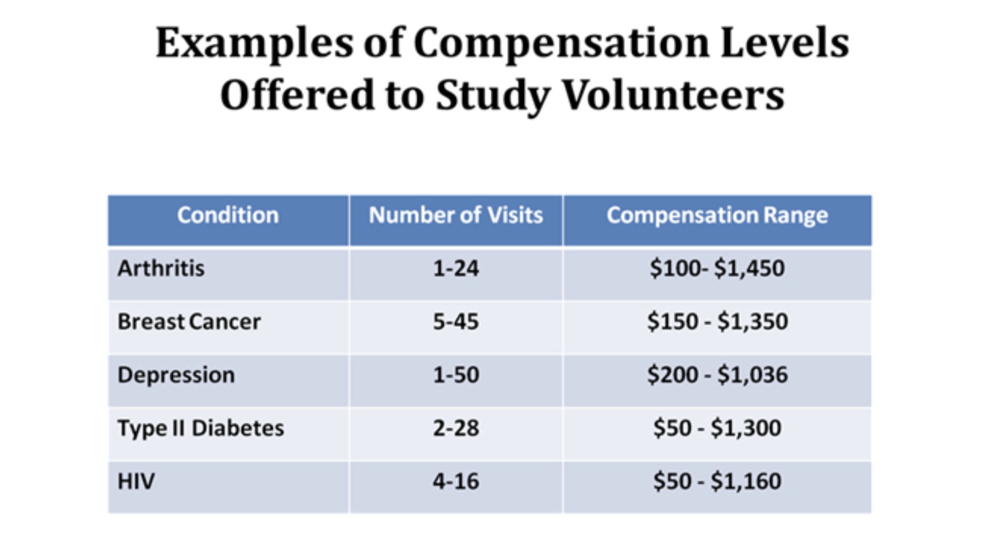 Clinical trials compensation can vary based on several factors: